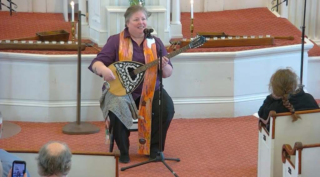 Rev. Lara Hoke playing a little bouzouki during the Time for All Age