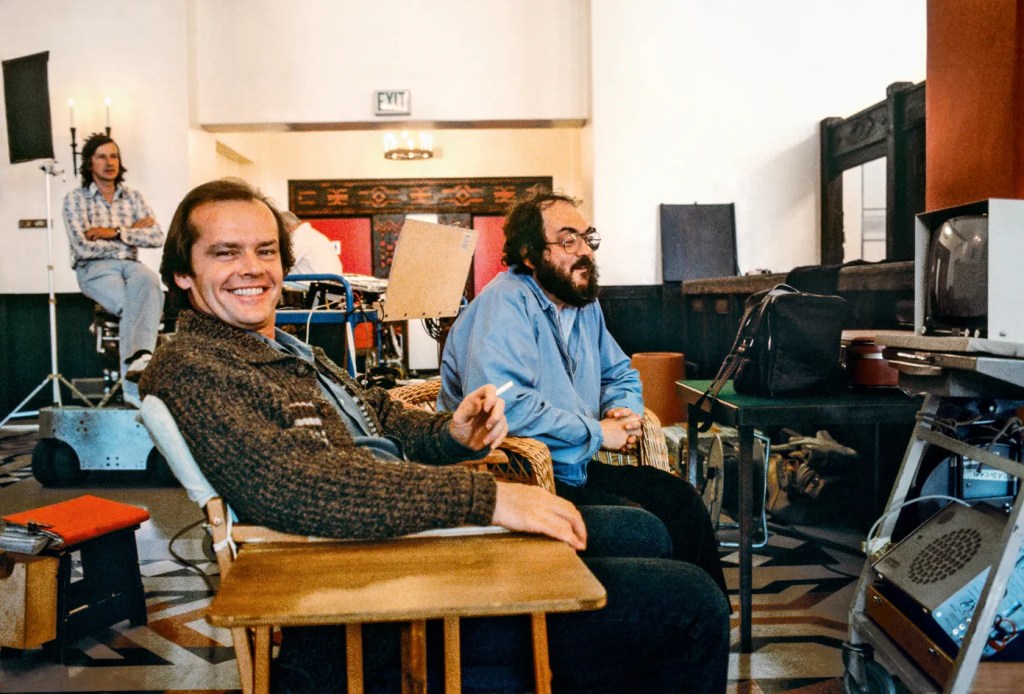 Jack Nicholson and Stanley Kubrick on the set of The Shining (1980).